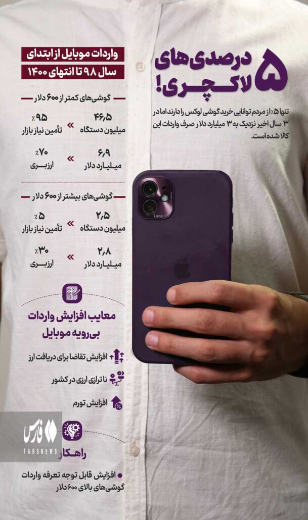 بررسی آمار و ارقام مربوط به واردات موبایل نشان میدهد درحالیکه فقط 5 درصد مردم توانایی خرید گوشی لوکس دارند، اما در 3 سال اخیر نزدیک به 3 میلیارد دلار صرف واردات این کالا به کشور شده است.